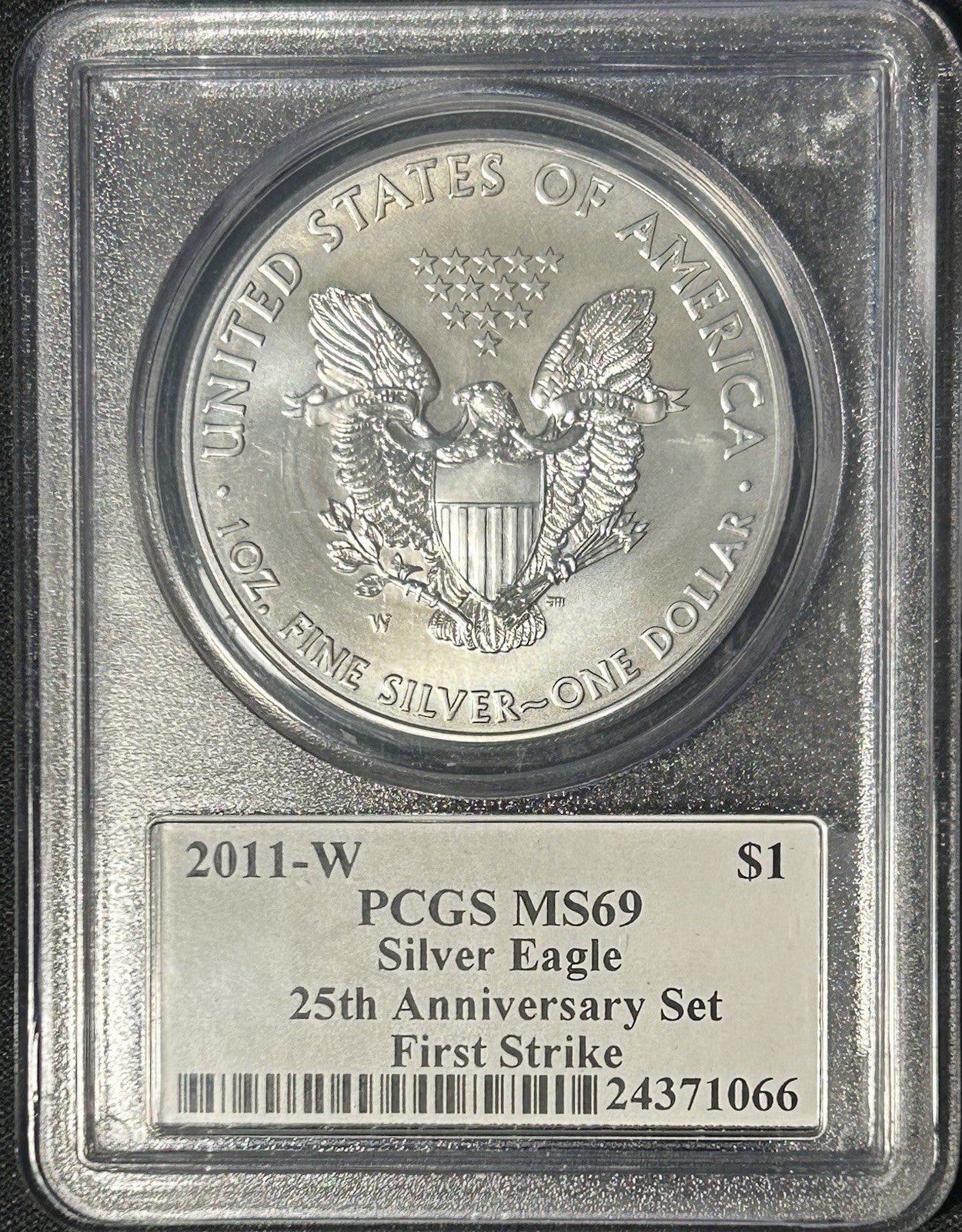 2011 W $1 BURNISHED SILVER EAGLE PCGS MS69 FS MERCANTI FROM 25TH ANNIVERSARY SET